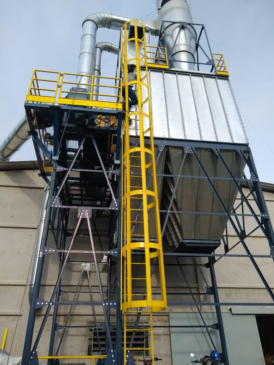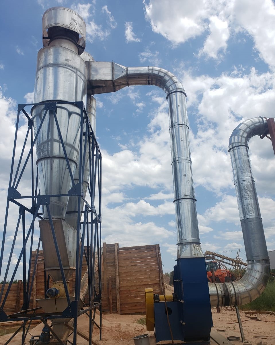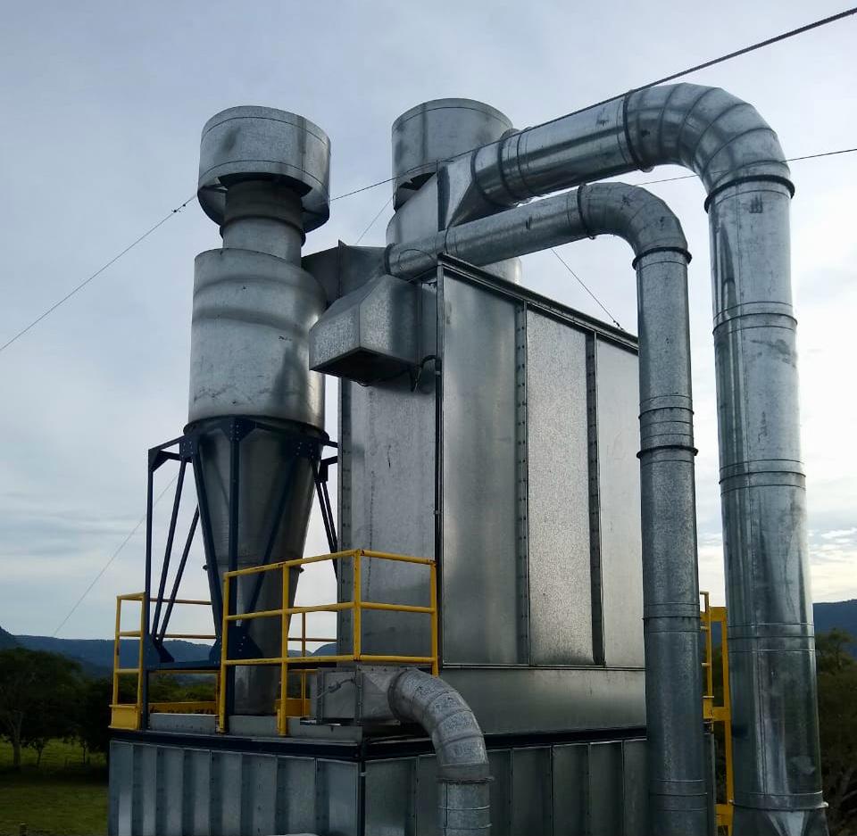 sistema de exaustão com ciclone duplo e transporte por rosca